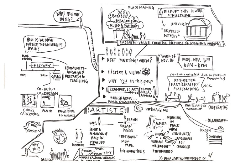 As an example of one initiative, faculty members and public artists are coming together to explore collaboration that brings a sense of “place” to two sister cities – Syracuse, NY and Rochester, NY.