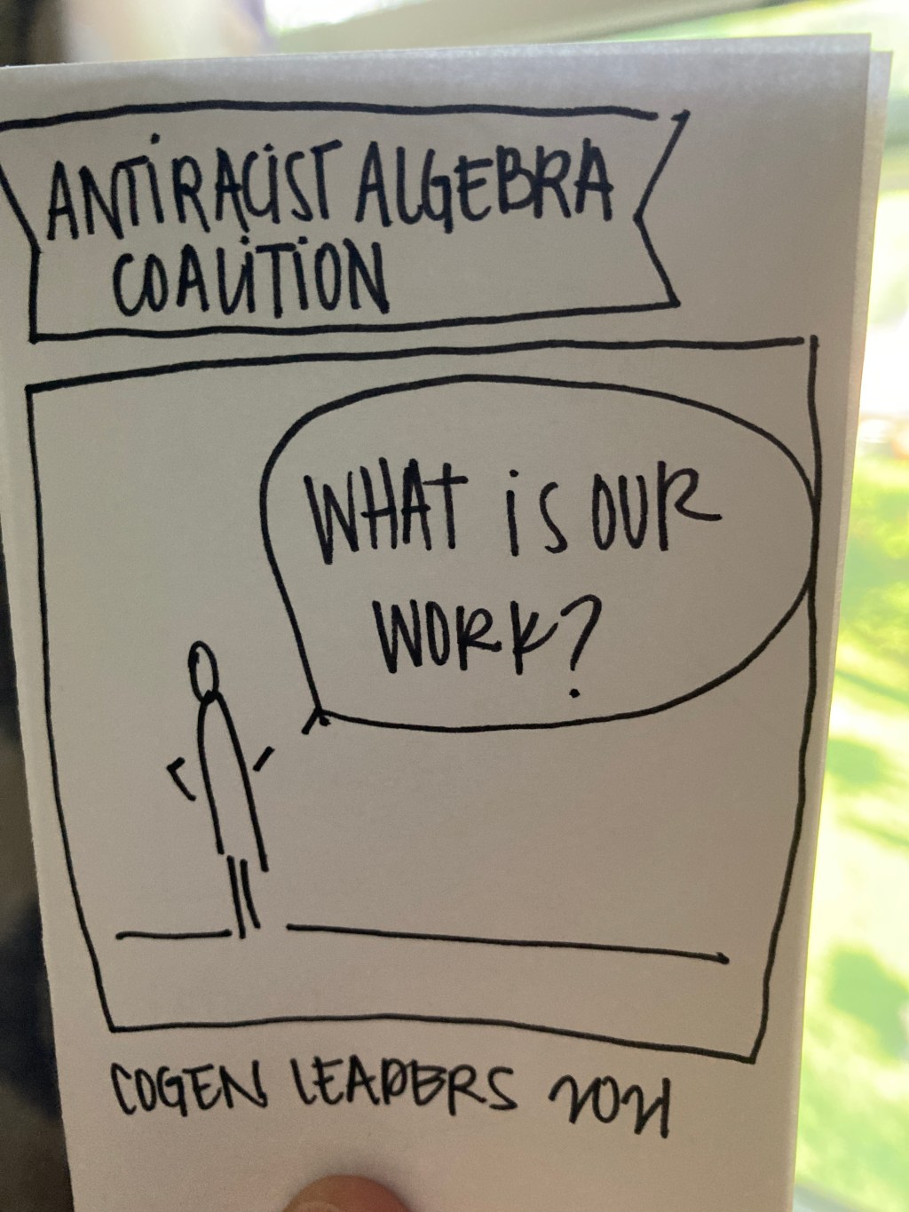 I wrote this post as response to a Syracuse University student who wanted to learn more a bout the Antiracist Algebra Coalition. I hope you enjoy learning more about this work!