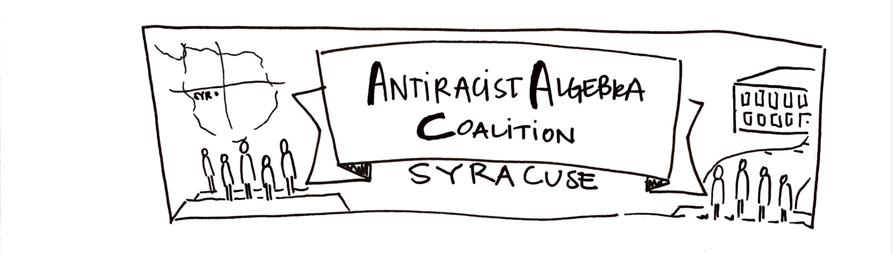 “Not everything that is faced can be changed. But nothing can be changed until it is faced.” james Baldwin Purpose The purpose of the Antiracist Algebra Coalition is to connect Syracuse community members and stakeholders in education to explore the intersection of antiracism and students’ success in algebra in Syracuse. We aim to educate ourselves, … Continue reading Antiracist Algebra Coalition