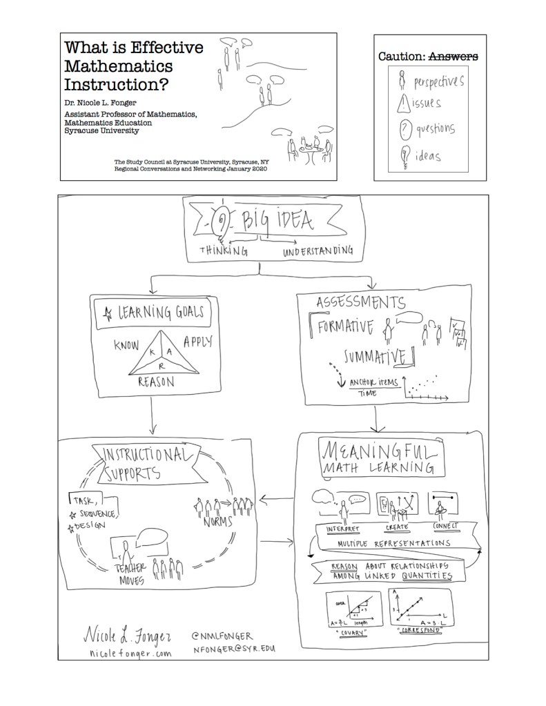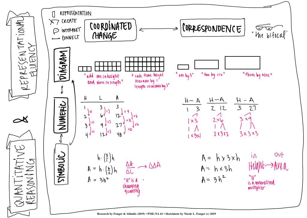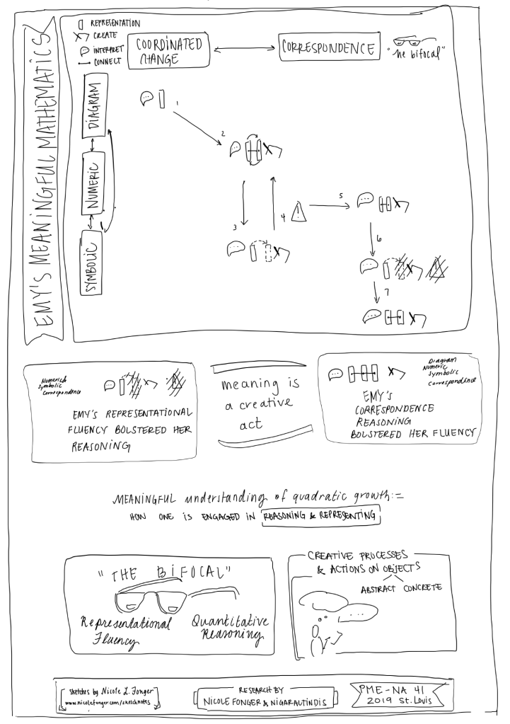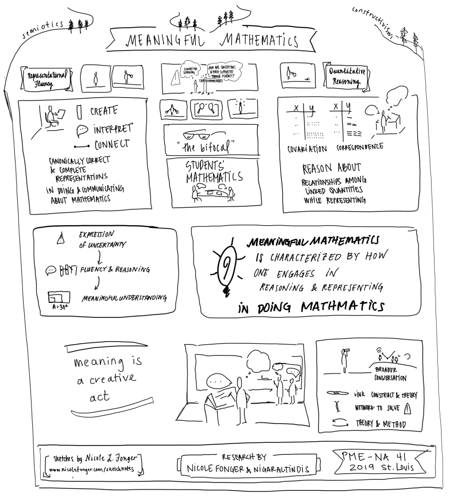 These sketchnotes capture a summary of our research talk given at PME-NA 41 in St. Louis, November 2019. Please cite the images as “Fonger, N. L., & Altindis, N. A. (2019). Meaningful Mathematics: Sketchnotes. Published on nicolefonger.com”