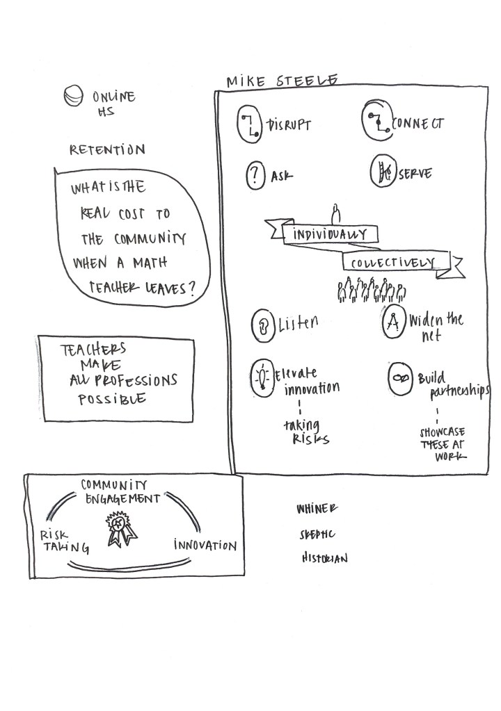 I create and shares sketchnotes – a textual-visual form of communication – as a mechanism to push the boundaries of what is possible in current, textually dense publication practices.